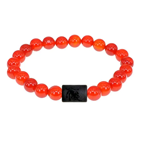 Стрейч-браслет с зодиакальной бусиной Лев из синтетического шунгита и натурального сердолика.
