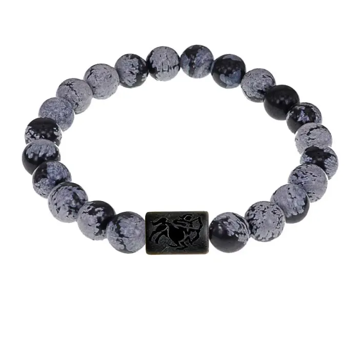 Браслет Стрелец (Шунгит) с нат.камнем Снежный обсидиан 8мм BSZ06-09