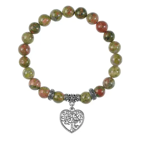 Браслет из натурального камня унакит с подвеской в виде символа «Дерево любви».