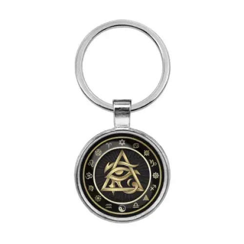 Брелок с символикой Око Ра. Изготовлен из бижутерного сплава и стали.