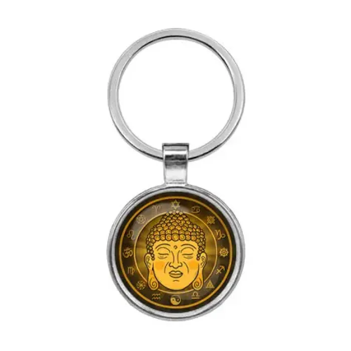 Брелок из бижутерного сплава со стеклянной линзой и покрытием под серебро.
