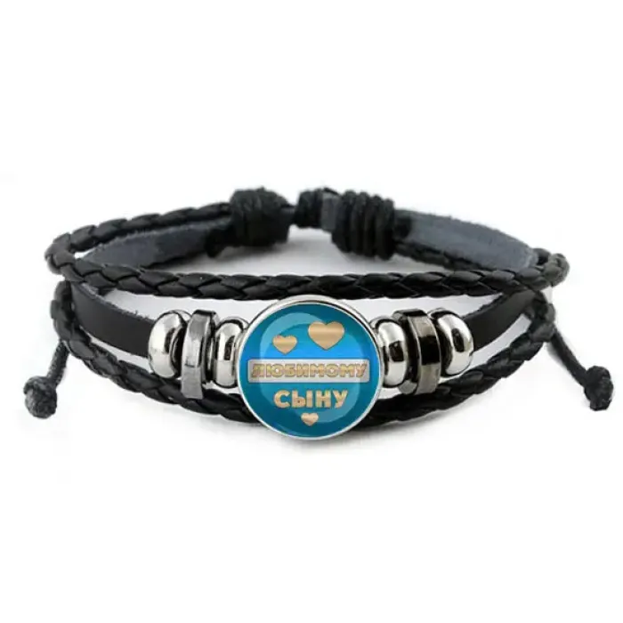 Кожаный браслет Любимому сыну — это стильный аксессуар, который станет прекрасным подарком для близкого человека. С изображением диаметром 20 мм под выпуклой стеклянной линзой, он добавляет уникальности и выразительности. Регулируемый размер позволяет удобно носить браслет на любом запястье. Изготовленный из синтетической кожи, металла и стекла, этот браслет сочетает в себе качество и элегантность. Упакован в прозрачный пакет, что делает его идеальным вариантом для подарка.