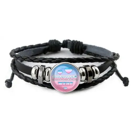 Кожаный браслет с трогательным изображением, заключённым под выпуклой стеклянной линзой, станет идеальным подарком для любимой женщины. Этот аксессуар не только украшает, но и символизирует глубокие чувства и заботу. Размер регулируется по обхвату запястья, что делает его универсальным для любого стиля. Изготовлен из синтетической кожи, металла и стекла, он отличается прочностью и долговечностью. Упакован в прозрачный пакет, что позволяет сразу подарить его без дополнительных затрат на упаковку.