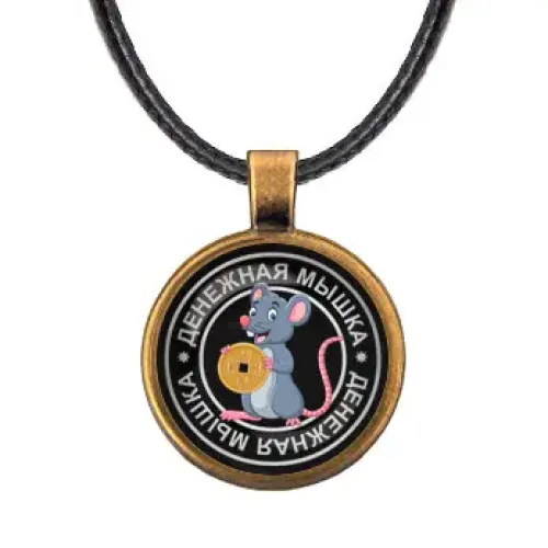 Кулон со шнурком «Денежная мышка» из бижутерного сплава со стеклянной вставкой.