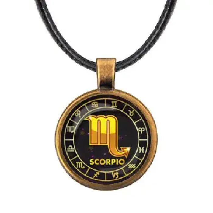 Кулон со шнурком Знаки Зодиака - Скорпион — это стильное украшение, которое символизирует силу и страсть знака Скорпиона. Изготовленный из бижутерного сплава с покрытием под бронзу и стекла, кулон обладает уникальным дизайном. Диаметр изделия составляет 28 мм, а изображение защищено выпуклой стеклянной линзой, что придаёт ему особую привлекательность.