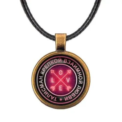 Кулон со шнурком Талисман крепкой взаимной любви — это уникальное украшение, символизирующее крепкие и искренние чувства. Этот талисман создан из бижутерного сплава с покрытием под бронзу и дополнен стеклянным элементом, защищённым выпуклой линзой. Диаметр кулона составляет 28 мм, что делает его заметным акцентом в любом образе.