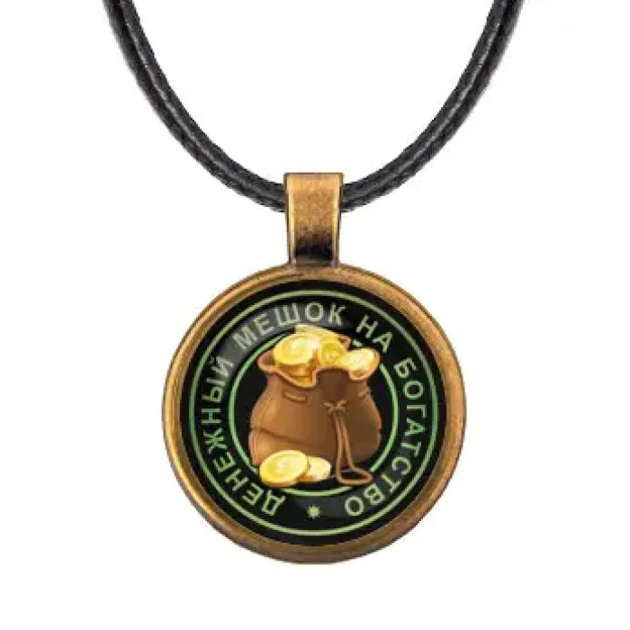 Кулон со шнурком "Денежный мешок" — это стильное украшение, которое символизирует финансовое благополучие и удачу. Изготовленный из бижутерного сплава с покрытием под бронзу и стекла, он станет отличным дополнением к любому образу.