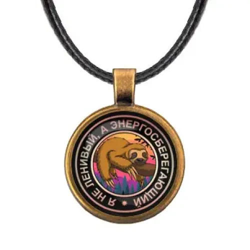Кулон со шнурком из бижутерного сплава со стеклянной линзой.