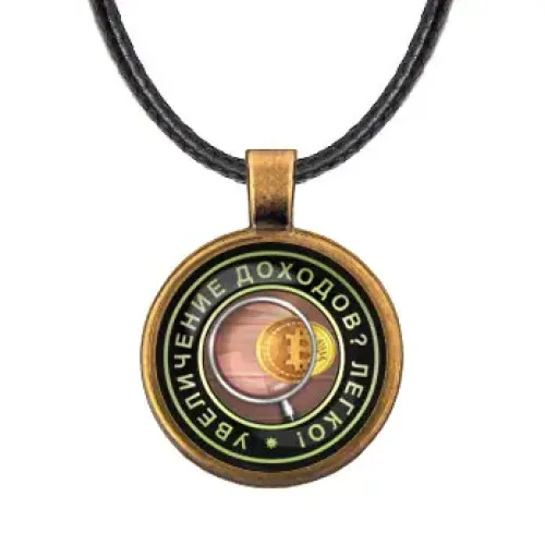 Кулон со шнурком «Увеличение доходов» — сувенирный аксессуар из бижутерного сплава с покрытием под бронзу и стеклянной линзой.