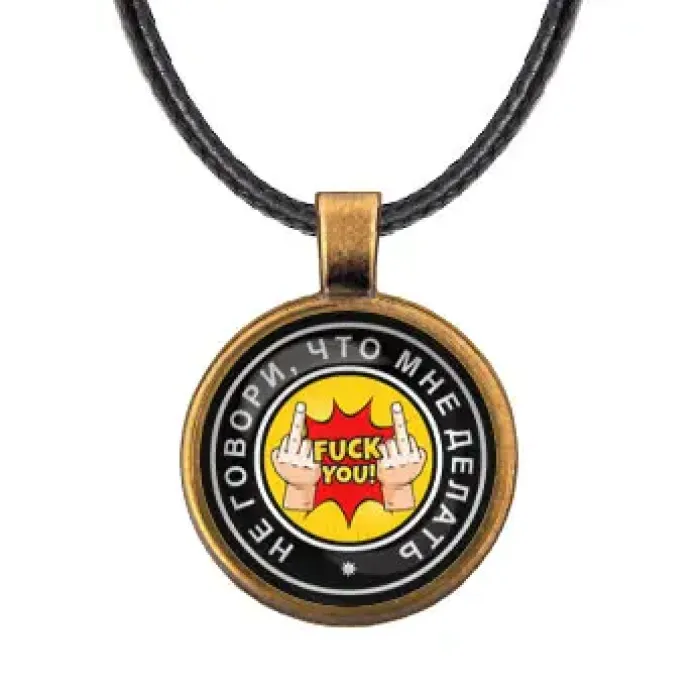Кулон со шнурком «Не говори, что мне делать». Изготовлен из бижутерного сплава и стекла.
