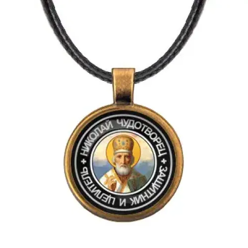Кулон со шнурком Святой Николай Чудотворец — это не только стильный аксессуар, но и символ веры и надежды. Изготовленный из бижутерного сплава с покрытием под бронзу и стекла, этот кулон станет прекрасным подарком для близких или личным оберегом. Основные особенности: