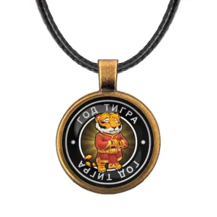 Кулон со шнурком Восточный гороскоп - год Тигра является уникальным украшением, которое сочетает в себе элементы восточной культуры и символики. Этот кулон станет не только стильным аксессуаром, но и символом силы и уверенности, ассоциируемым с тигром.