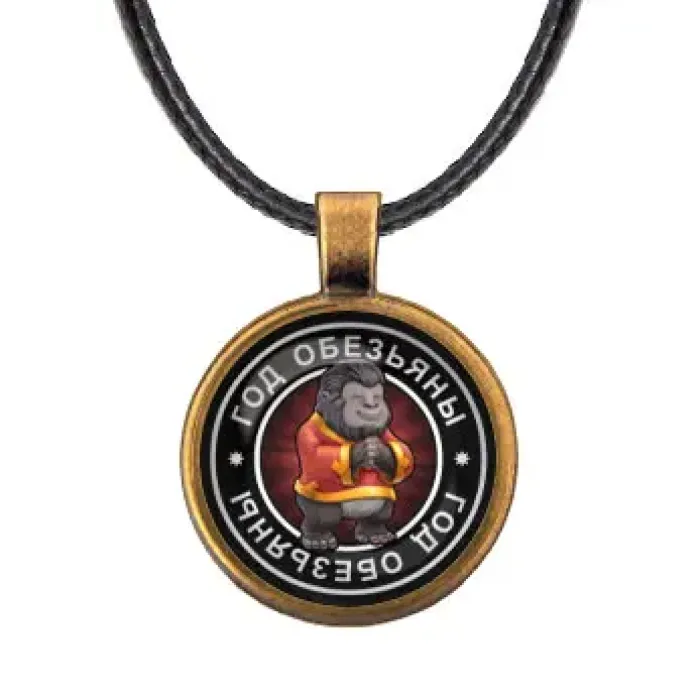 Кулон со шнурком Восточный гороскоп - год Обезьяны является уникальным украшением, которое не только подчеркивает индивидуальность, но и символизирует удачу и благополучие. Этот кулон выполнен из бижутерного сплава с покрытием под бронзу и дополнен стеклянным элементом, который защищает изображение. Диаметр кулона составляет 28 мм, что делает его заметным акцентом в любом образе.