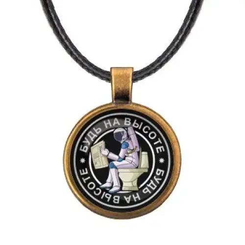 Кулон со шнурком из бижутерного сплава с покрытием под бронзу и стеклянной линзой.