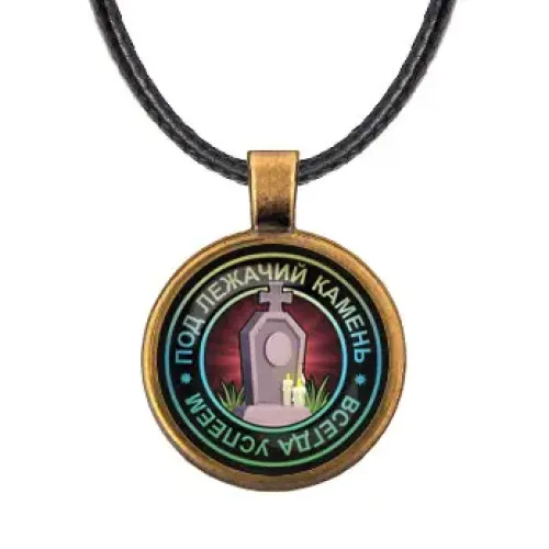 Кулон со шнурком из бижутерного сплава с покрытием под бронзу и стеклом, защищенный выпуклой линзой.