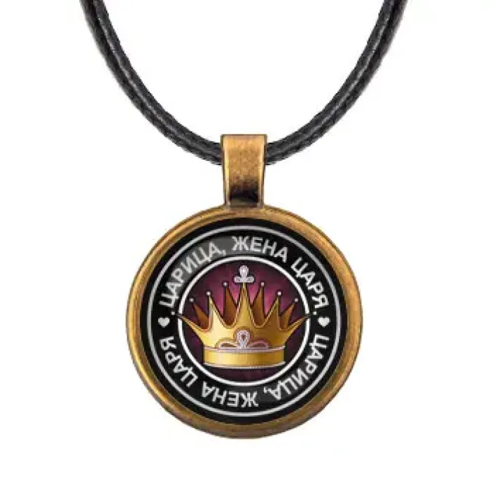 Кулон со шнурком Царица — это стильное украшение, которое добавляет изюминку любому образу. Изготовленный из бижутерного сплава с покрытием под бронзу и стекла, этот кулон отличается прочностью и элегантным дизайном. Диаметр изделия составляет 28 мм, а изображение защищено выпуклой стеклянной линзой, что придаёт ему особый шарм. В комплект входит чёрный шнурок с замком лобстер для удобства ношения. Этот аксессуар станет отличным подарком или дополнением к личной коллекции украшений.