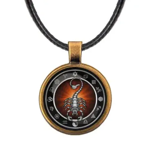 Кулон со шнурком в виде скорпиона. Изделие из бижутерного сплава со стеклянной линзой.