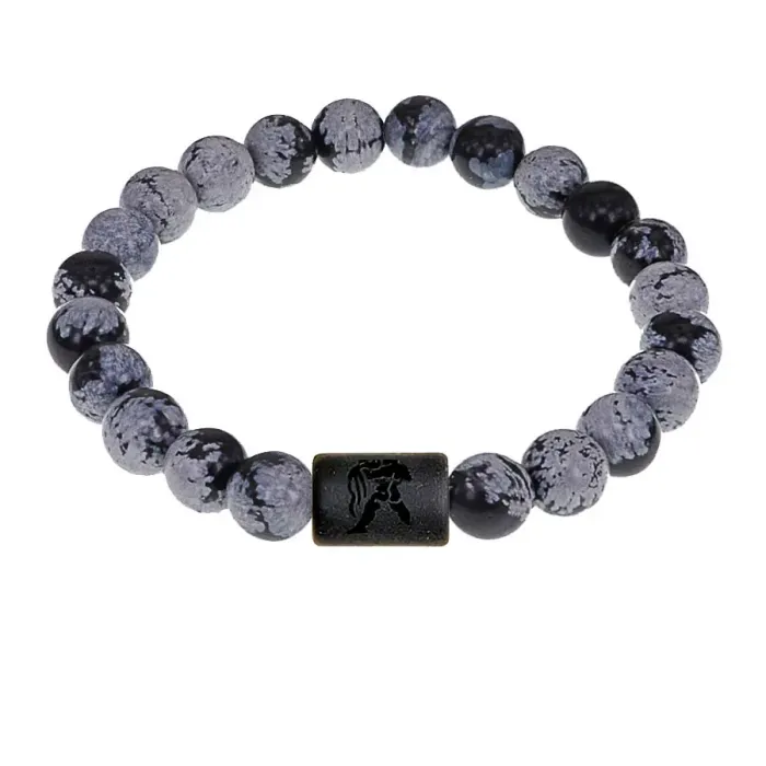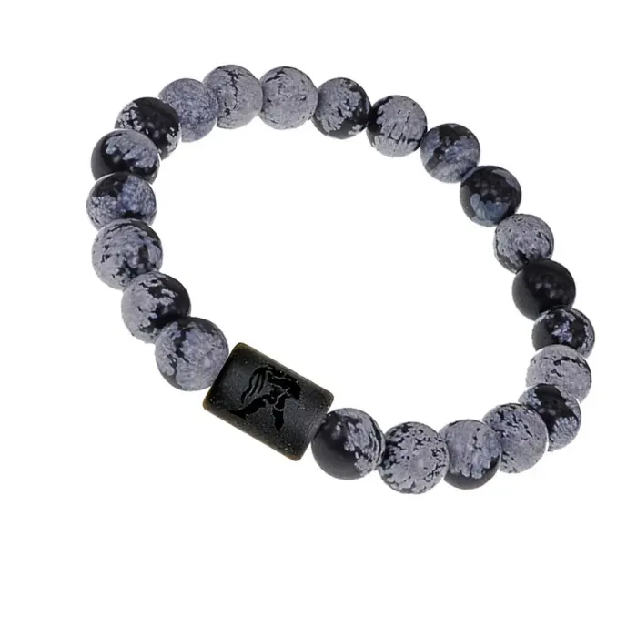 Браслет Водолей (Шунгит) с нат.камнем Снежный обсидиан 8мм BSZE06-11