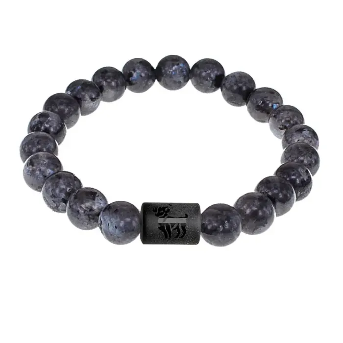 Стрейч-браслет с зодиакальной бусиной Овен из синтетического шунгита и натурального камня лабрадор.