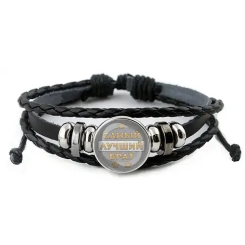 Кожаный браслет 'Самый лучший брат' — это стильный аксессуар, который станет отличным подарком для близкого человека. Изготовленный из синтетической кожи, металла и стекла, он сочетает в себе прочность и элегантность. Диаметр изображения составляет 20 мм и защищен выпуклой стеклянной линзой, что придает изделию особую выразительность. Регулируемый размер позволяет комфортно носить браслет на любом запястье. Упакован в прозрачный пакет, что делает его идеальным вариантом для подарка. Этот аксессуар не только подчеркивает индивидуальность, но и символизирует крепкие семейные узы.