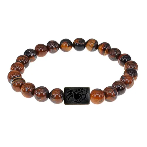 Стрейч-браслет с зодиакальной бусиной Стрелец из синтетического шунгита и бусинами из натурального камня тигровый глаз.