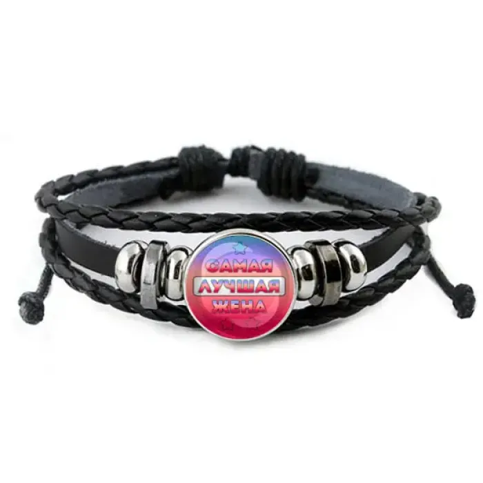 Кожаный браслет с изысканным дизайном, который станет идеальным подарком для самой любимой жены. Изображение диаметром 20 мм под выпуклой стеклянной линзой придаёт изделию особую привлекательность и стиль. Регулируемый размер позволяет комфортно носить браслет на любом запястье, а материалы — синтетическая кожа, металл и стекло — обеспечивают долговечность и качество. Упаковка в прозрачный пакет добавляет удобства при дарении. Такой аксессуар не только подчеркнёт индивидуальность, но и станет символом любви и заботы.