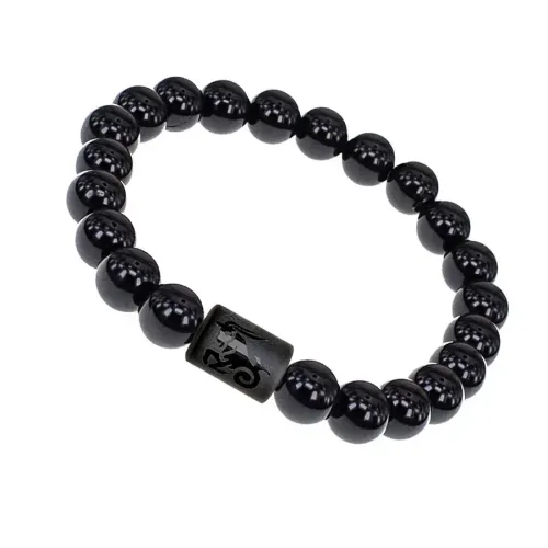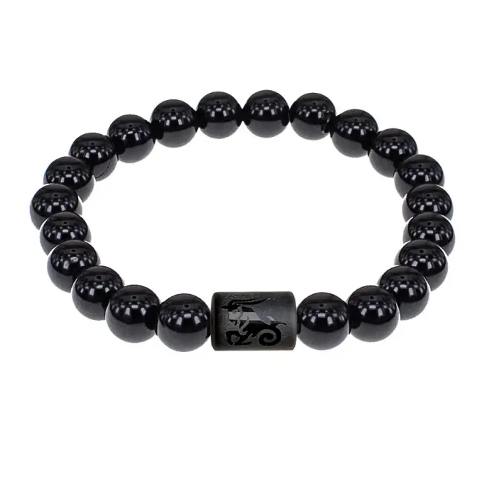 Браслет Козерог (Шунгит) с нат.камнем Чёрный агат 8мм BSZE06-22