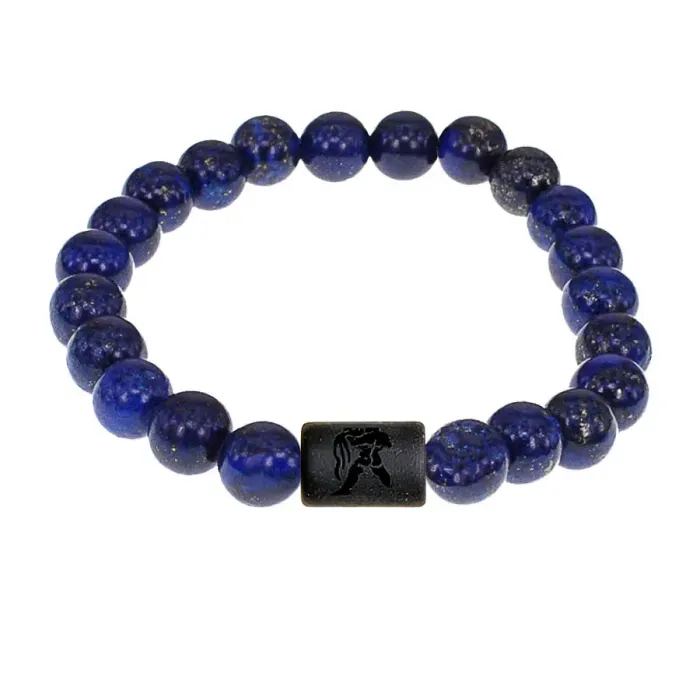 Стрейч-браслет с зодиакальной бусиной Водолей из синтетического шунгита и натурального камня лазурит.