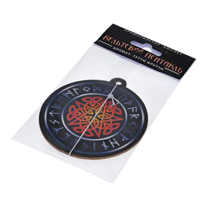 Ароматизатор - амулет Кельтский пентакль с ароматом Тутти Фрутти приносит в автомобиль свежесть и защиту. Этот стильный аксессуар сочетает приятный фруктовый аромат и символику кельтского пентакля, который традиционно считается мощным оберегом.