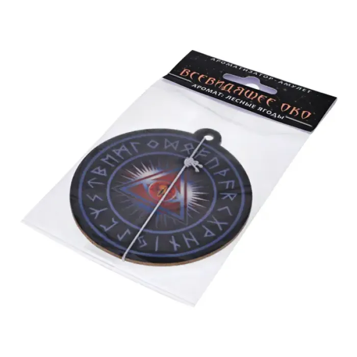 Ароматизатор - амулет Всевидящее око с ароматом лесных ягод приносит в автомобиль атмосферу свежести и гармонии. Уникальный дизайн в форме амулета с изображением Всевидящего ока оберегает от зла и ошибок, а освежающий запах лесных ягод наполняет поездки легкостью и радостью. Диаметр 7 см делает его компактным для любого автомобиля. Упаковка Flow Pack с картонным подвесом содержит описание свойств амулета, что делает его отличным вариантом для подарка или сувенира. Для максимального эффекта рекомендуется повесить ароматизатор на зеркало заднего вида — он станет источником аромата и визуальным акцентом интерьера.