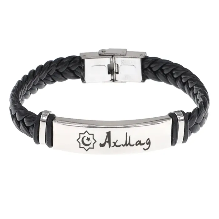Мусульманский именной браслет. Плетёный кожаный браслет с гравировкой.