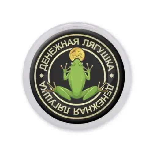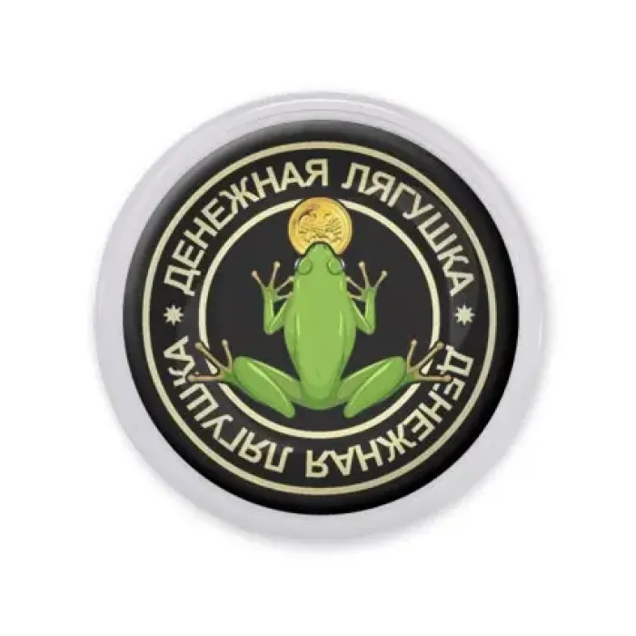 Акриловый магнит круглой формы с изображением денежной лягушки.