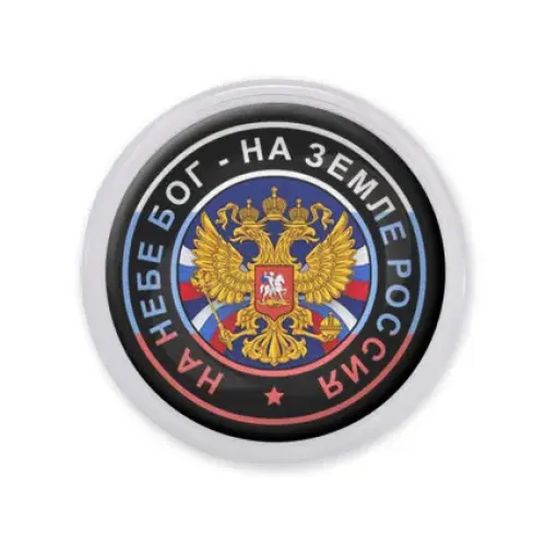 Акриловый магнит d.56мм На небе Бог, на земле Россия MAF0091