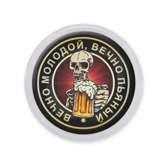 Акриловый магнит d.56мм Вечно молодой, вечно пьяный MAF0158