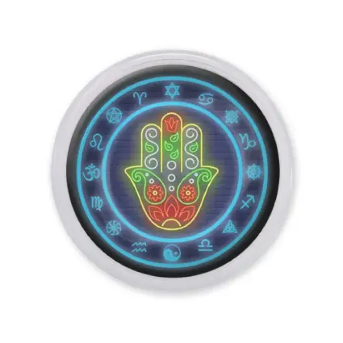 Акриловый магнит круглой формы с изображением Хамсы.