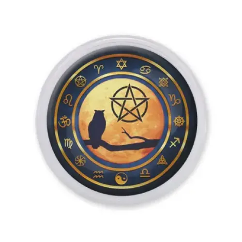 Акриловый магнит d.56мм Сова и пентаграмма MAF0184