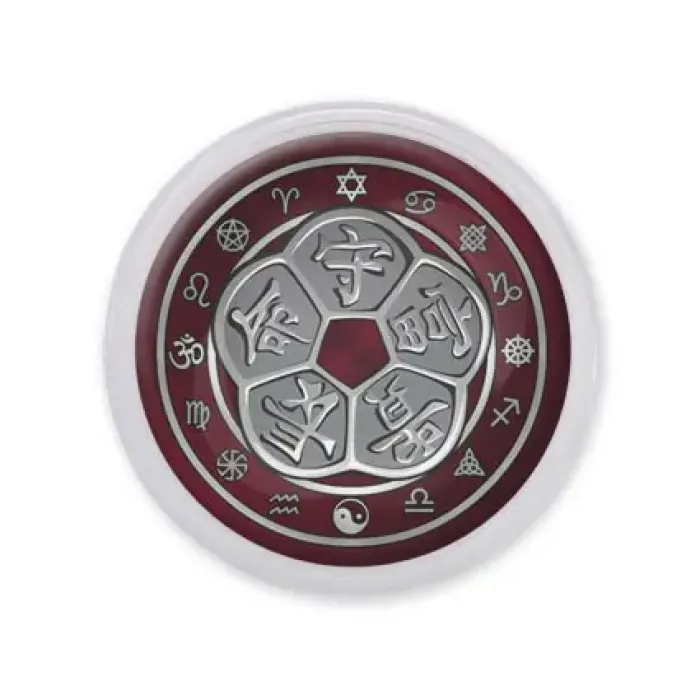 Акриловый магнит диаметром 56 мм с изображением талисмана пяти благ.