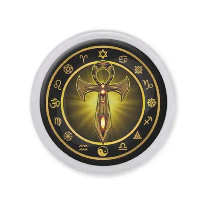 Акриловый сувенирный магнит круглой формы с изображением клинка Анкха.