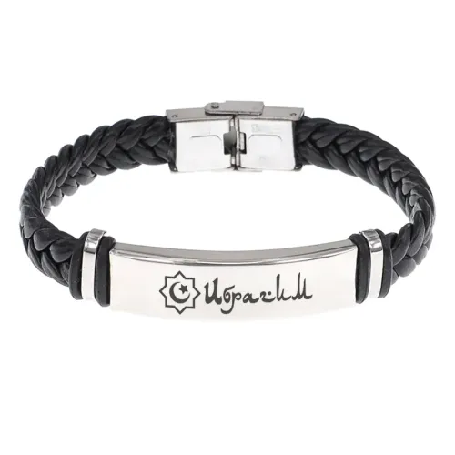 Мусульманский именной браслет. Плетёный кожаный браслет с гравировкой.