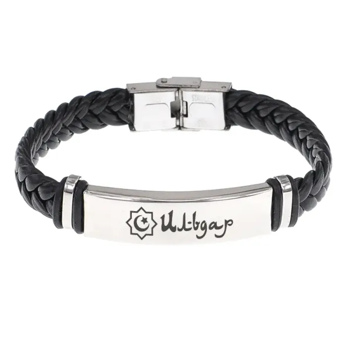 Мусульманский именной браслет. Плетёный кожаный браслет с гравировкой.