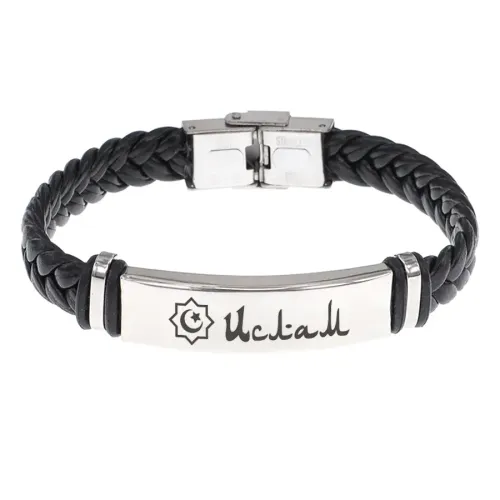 Именной сувенирный браслет из кожи с гравировкой в исламской тематике.
