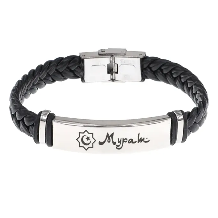 Мусульманский именной браслет. Плетёный кожаный браслет с гравировкой.