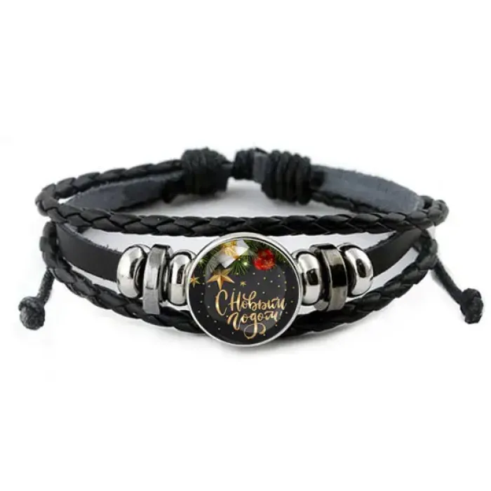 Кожаный браслет с изображением, который станет стильным аксессуаром в новогодний период. Этот уникальный браслет выполнен из синтетической кожи и металла, а изображение защищено выпуклой стеклянной линзой диаметром 20 мм. Регулируемый размер позволяет удобно носить его на любом запястье. Упакован в прозрачный пакет, что делает его отличным вариантом для подарка или сувенира к празднику. Браслет символизирует радость и тепло новогодних праздников.
