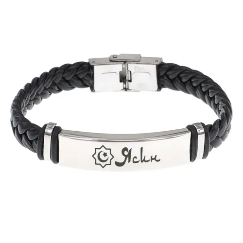 Мусульманский именной браслет с гравировкой. Плетёный кожаный браслет.