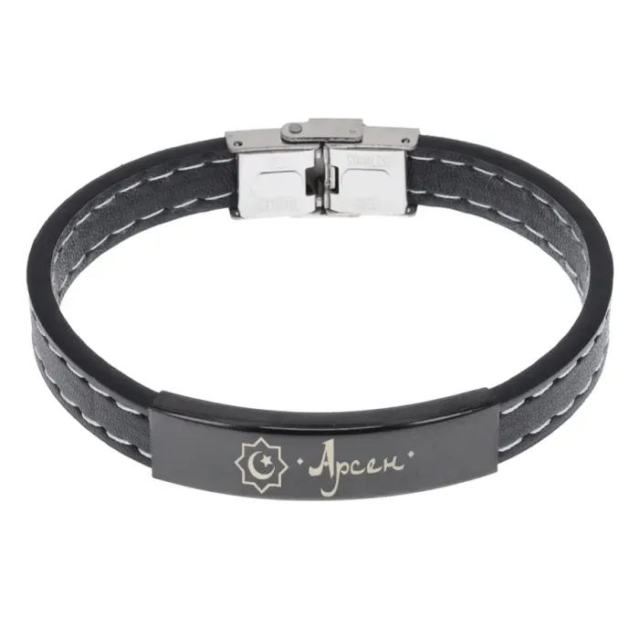 Материал и изготовление: Экокожа, нержавеющая сталь. Гравировка.