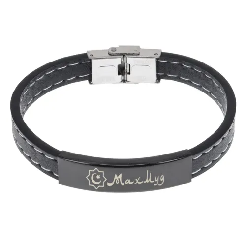 Материал и изготовление: экокожа, нержавеющая сталь, гравировка.