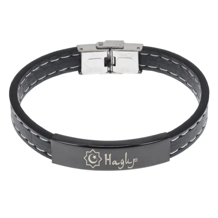 Материал и изготовление: Экокожа, нержавеющая сталь. Браслет с гравировкой.