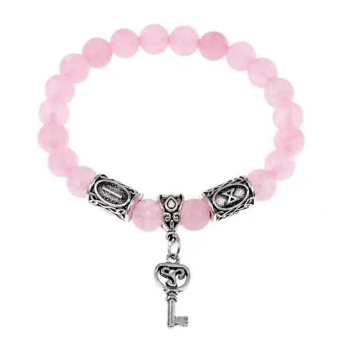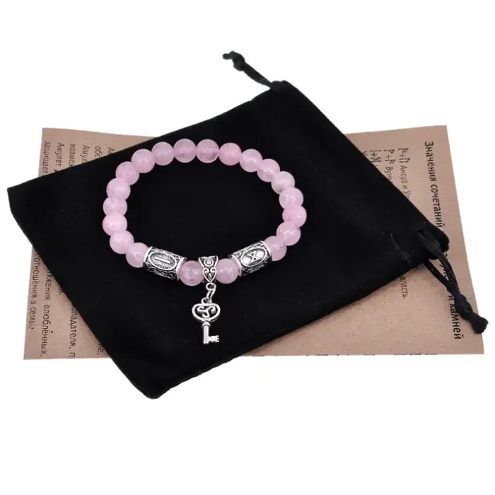 Рунический браслет-амулет Долгожданное счастье с нат. камнем Розовый кварц BSRA-102