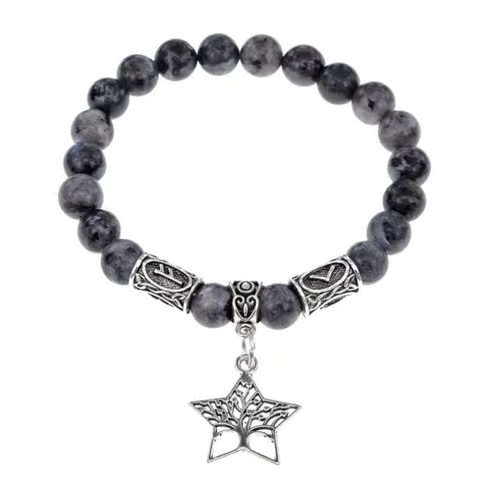 Рунический браслет-амулет с натуральным камнем лабрадор и подвеской «Дерево жизни».