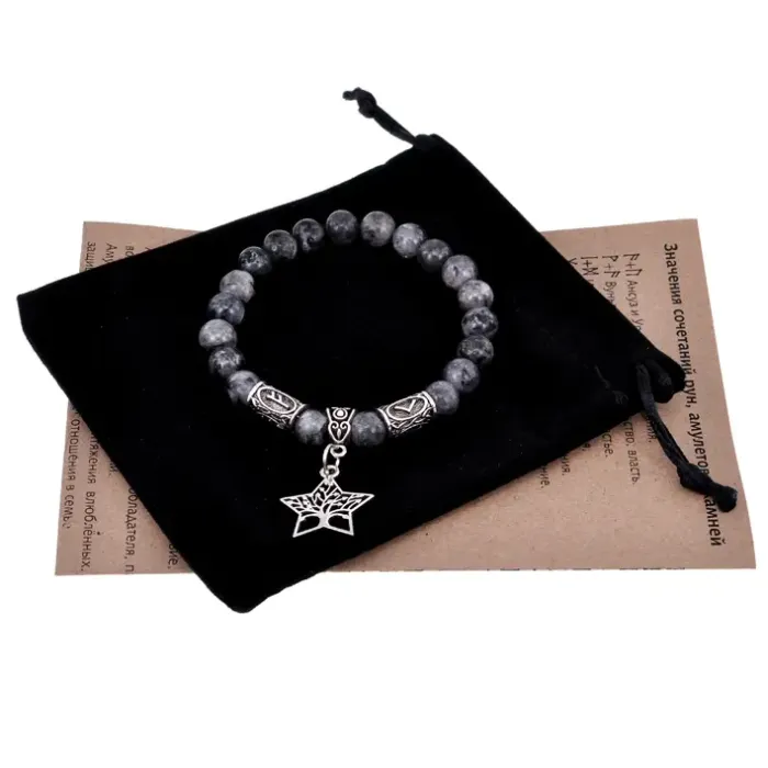 Рунический браслет-амулет Выход из трудного положения с нат. камнем Лабрадор BSRA-105